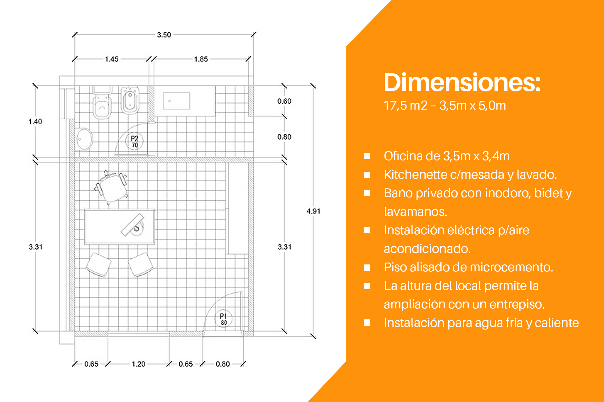 Kitchenette con mesada y lavado, termotanque eléctrico bajo mesada.