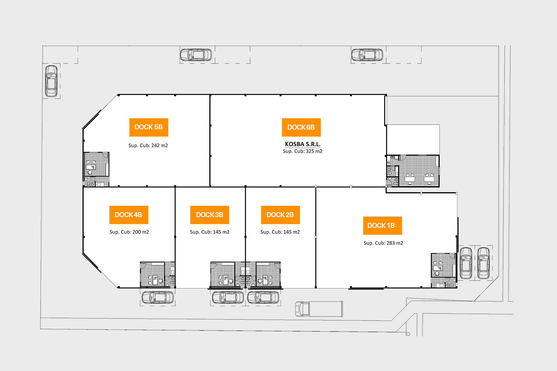 El SECTOR B se compone de seis unidades funcionales que totalizan 1650 metros cuadrados cubiertos.